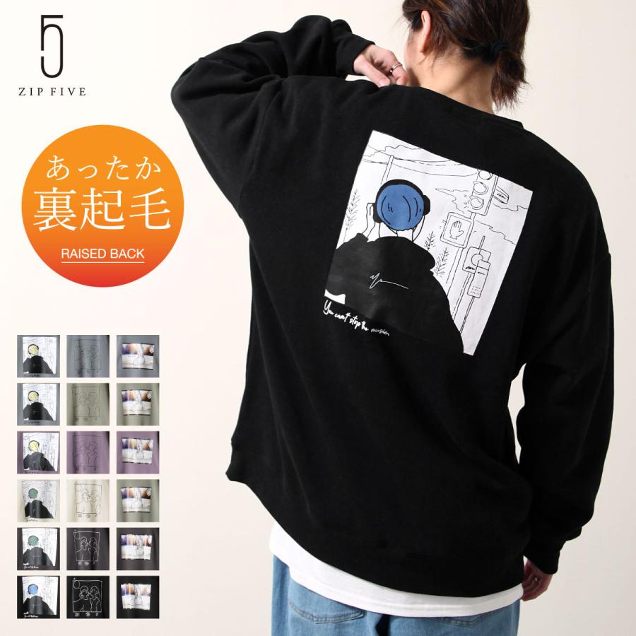 Zip Five イラストbigシルエットスウェット トレーナー メンズ スウェット ビッグスウェット イラスト バックイラスト エモ グラフィック